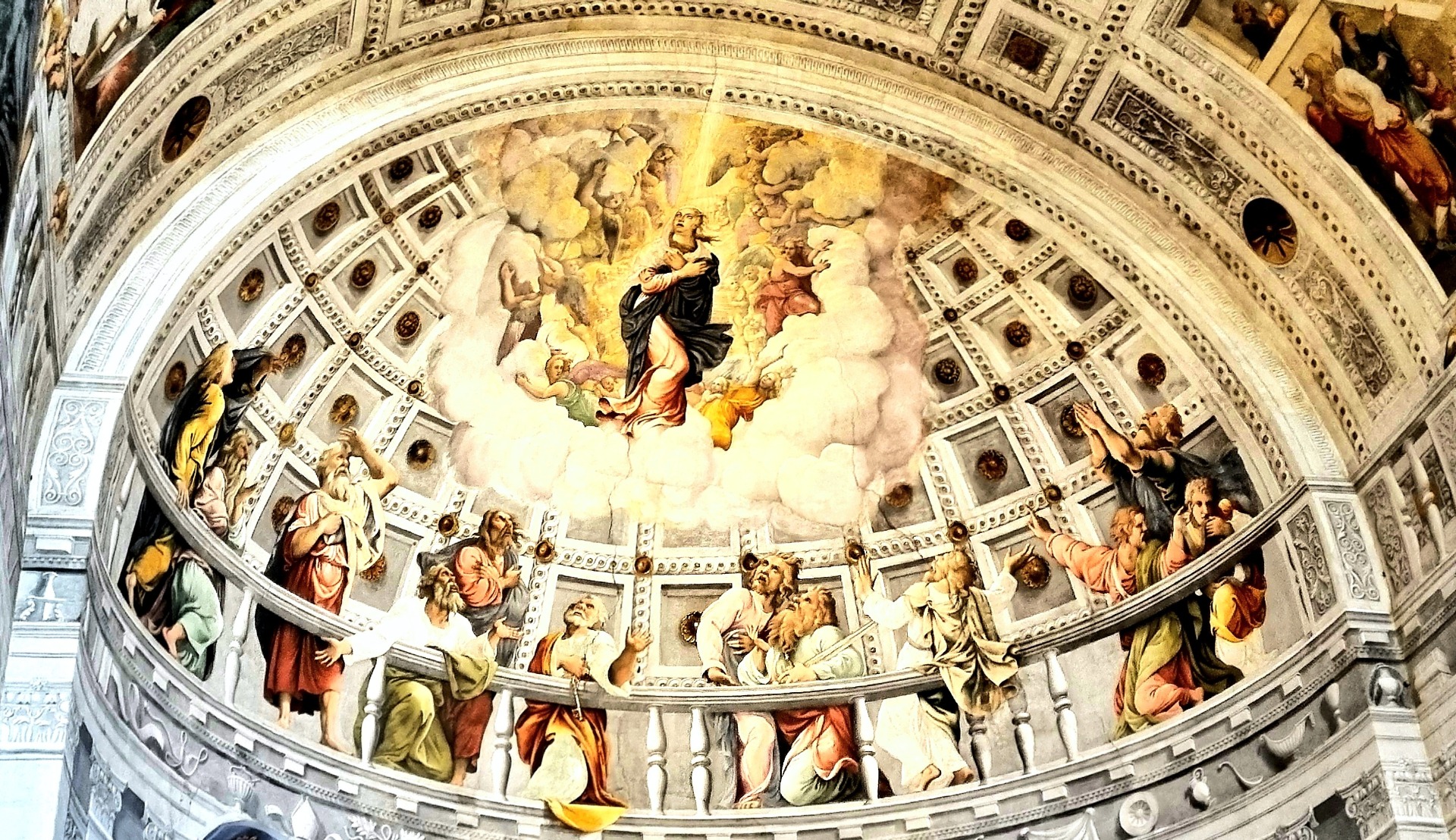 Za pozornost stojí také strop půlkruhové apsidy s freskou Panny Marie s dvanácti apoštoly.