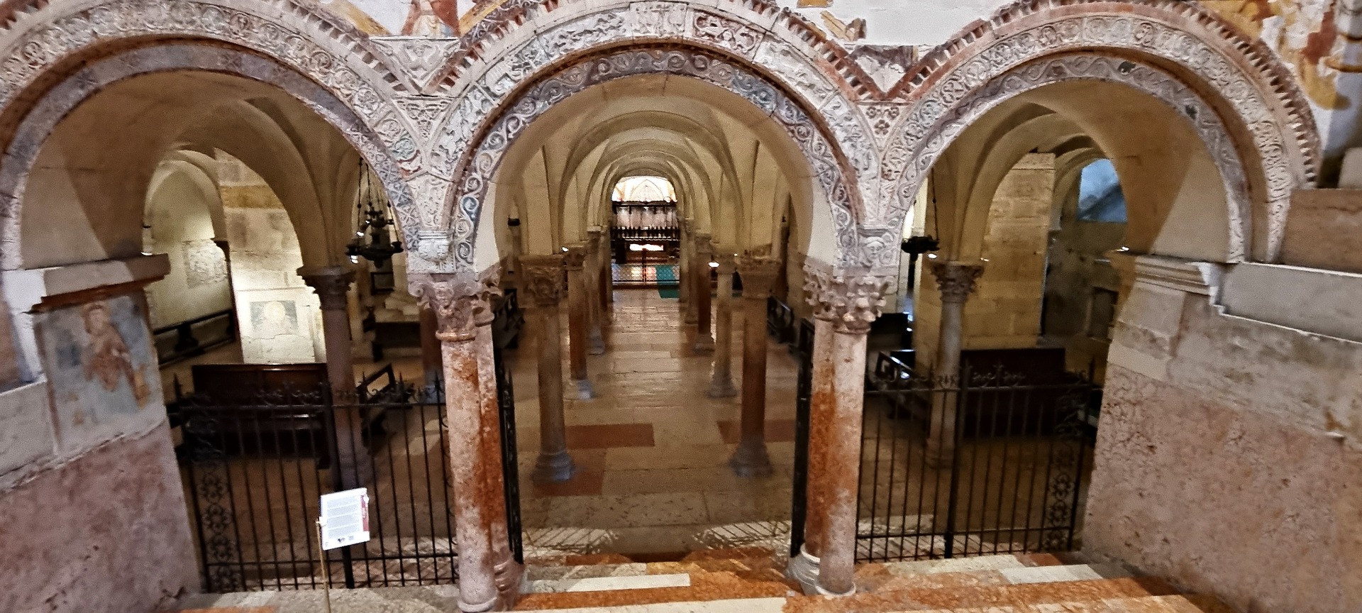 Vstup pro turisty je ze směru kláštera od mostu Ponte delle Navi. Za pokladnami doporučuji jít nejdříve vlevo. Sestoupí se po schodišti do stísněně působícího podzemního trojlodního prostoru románského kostela s křížovou klenbou.